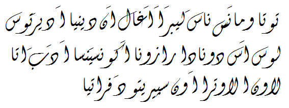Per diverti, on pote usa leteras arabi per scrive elefen: