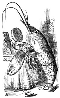 “Cisa tu no ia abita multe su la mar—” (“No,” Alisia dise) “—e cisa tu ia encontra an nunca un omaro” (Alisia comensa dise “Me ia come a un ves—” ma para rapida, e dise “No, nunca”) “—donce tu tota no pote conose la deleta grande de un Cuadrilia de Omaros!”