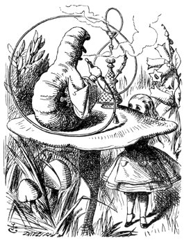 La Eruga e Alisia regarda lunlotra tra alga tempo en silentia: a fini, la Eruga prende la pipa de sua boca, e parla a el en un vose pigra e dormosa.
