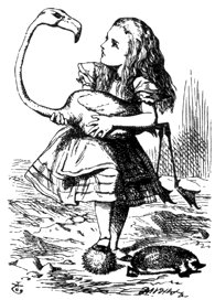 The chief difficulty Alice found at first was in managing her flamingo: she succeeded in getting its body tucked away, comfortably enough, under her arm, with its legs hanging down, but generally, just as she had got its neck nicely straightened out, and was going to give the hedgehog a blow with its head, it would twist itself round and look up in her face, with such a puzzled expression that she could not help bursting out laughing; and, when she had got its head down, and was going to begin again, it was very provoking to find that the hedgehog had unrolled itself, and was in the act of crawling away: besides all this, there was generally a ridge or a furrow in the way wherever she wanted to send the hedgehog to, and, as the doubled-up soldiers were always getting up and walking off to other parts of the ground, Alice soon came to the conclusion that it was a very difficult game indeed.