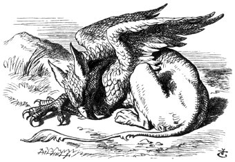 They very soon came upon a Gryphon, lying fast asleep in the sun. (If you don’t know what a Gryphon is, look at the picture.) “Up, lazy thing!” said the Queen, “and take this young lady to see the Mock Turtle, and to hear his history. I must go back and see after some executions I have ordered;” and she walked off, leaving Alice alone with the Gryphon. Alice did not quite like the look of the creature, but on the whole she thought it would be quite as safe to stay with it as to go after that savage Queen: so she waited.