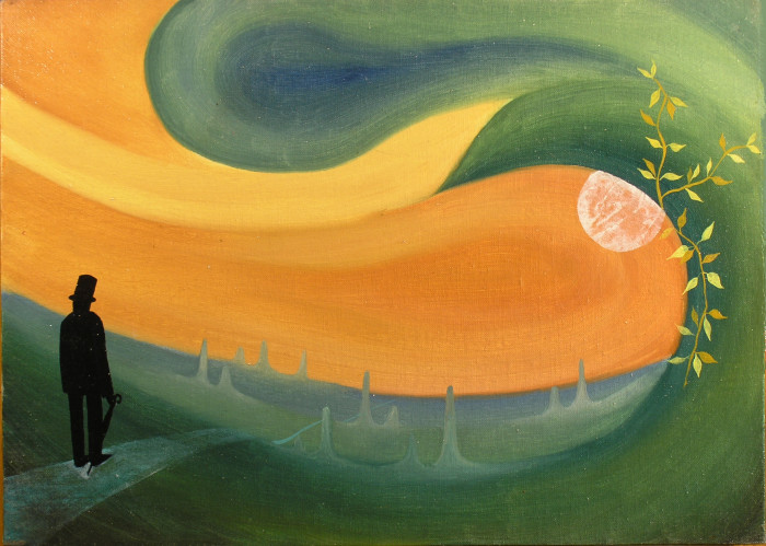 Je hochai la tête, l’esprit ailleurs. À moins de vingt mètres de la berge, telle un bouchon, une barque se laissait ballotter par les flots. Un homme était à son bord, dont je ne discernais que la silhouette obsolète. Debout sur la poupe, vêtu d’une redingote et d’un chapeau haut de forme, il ressemblait plus à un personnage de boîte à musique qu’à un être humain.