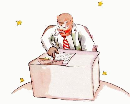 « Depuis cinquante-quatre ans que j’habite cette planète-ci, je n’ai été dérangé que trois fois. La première fois ç’a été, il y a vingt-deux ans, par un hanneton qui était tombé Dieu sait d’où. Il répandait un bruit épouvantable, et j’ai fait quatre erreurs dans une addition. La seconde fois ç’à été, il y a onze ans, par une crise de rhumatisme. Je manque d’exercice. Je n’ai pas le temps de flâner. Je suis sérieux, moi. La troisième fois… la voici ! Je disais donc cinq cent un millions…