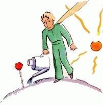 Et le petit prince, tout confus, ayant été chercher un arrosoir d’eau fraîche, avait servi la fleur.