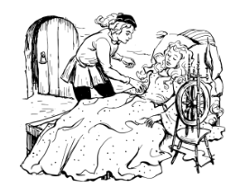 - Me es filinte - la fem vea ia dise. - Regarda! - e el ia dona la fuso a la prinsesa. En acel momento, la prinsesa ia pica sua dito.