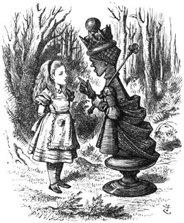 “Where do you come from?” said the Red Queen. “And where are you going? Look up, speak nicely, and don’t twiddle your fingers all the time.”