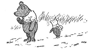 En un dia invernal cuando Porceta es brosinte neva ante sua casa, el leva acaso sua regarda, e alá el vide Wini-la-Pu. Pu vade a sirca e a sirca en un sirculo, pensante alga otra cosa, e cuando Porceta clama a el, el continua sola sua vade.